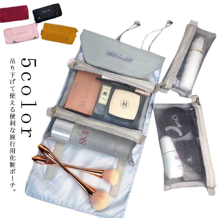 吊り下げ ポーチ セット トラベル フック付き 小物 可愛い 海外旅行 小さめ 収納 吊るして使える 撥水 レディース コスメポーチ 化粧 バスルーム ポーチ 仕切り 化粧品入れ 化粧水