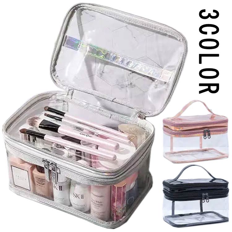クリア 二段ポーチ 透明 大容量 コスメポーチ おしゃれ コスメポーチ 母の日 化粧ポーチ ブラック レディース プレゼント バッグ