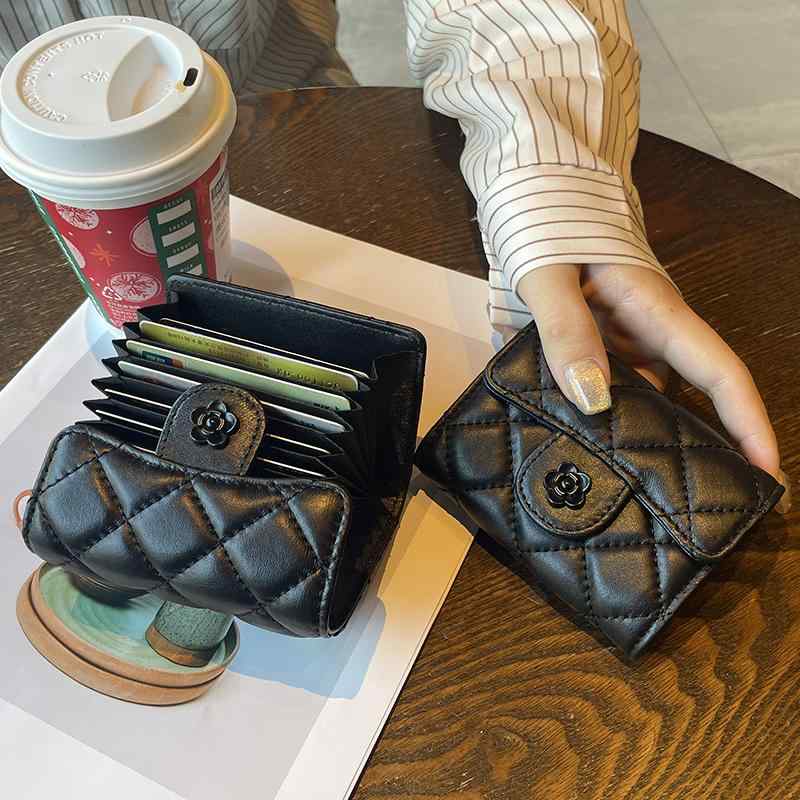 カードケース 小銭入れ ミニ財布 革 レザー 三つ折り 二つ折り レディース 女性用 キルティング ステッチ 花 コンパクト