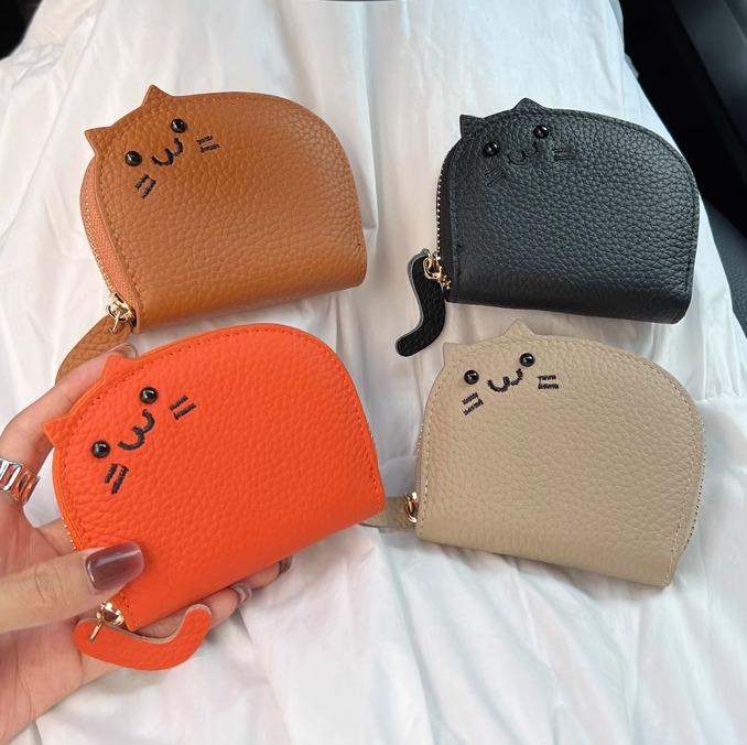 猫 ミニ財布 レディース 小銭入れ レザー 革 本革 定期入れ カード入れ 収納 レザー キャット アニマル かわいい