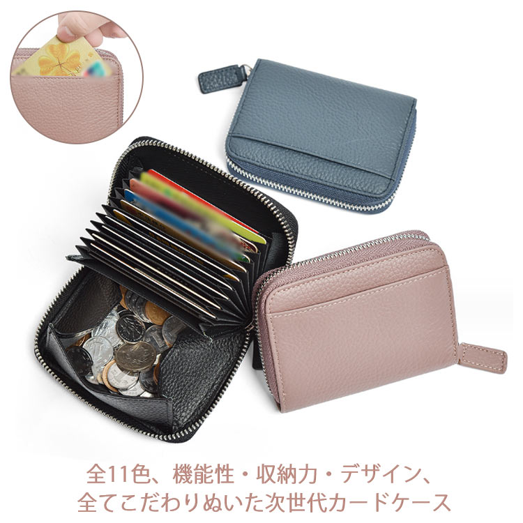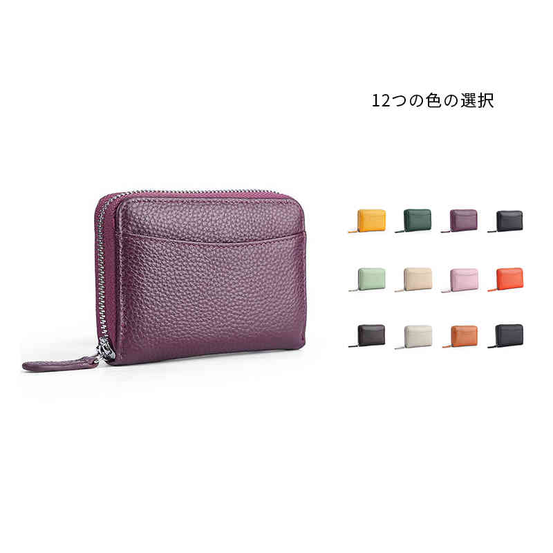 レディース 本革 カードケース 盗難防止 スキミング防止 カード入れ 大容量 ジップ ミニウォレット コンパクト