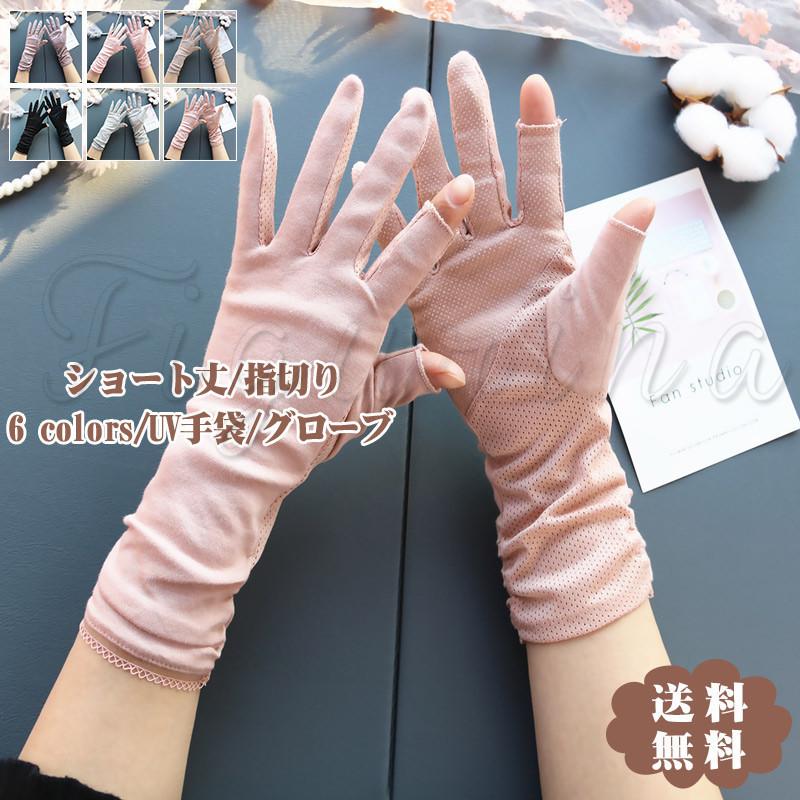 UV手袋 レディース ショート UVカット グローブ 夏用 メッシュ 日焼け止め 紫外線対策 指あり 綿 かわいい 滑り止め 薄手 伸縮性 通気性抜群 自転車 運転 通勤 通学 手袋 女性用 可愛い
