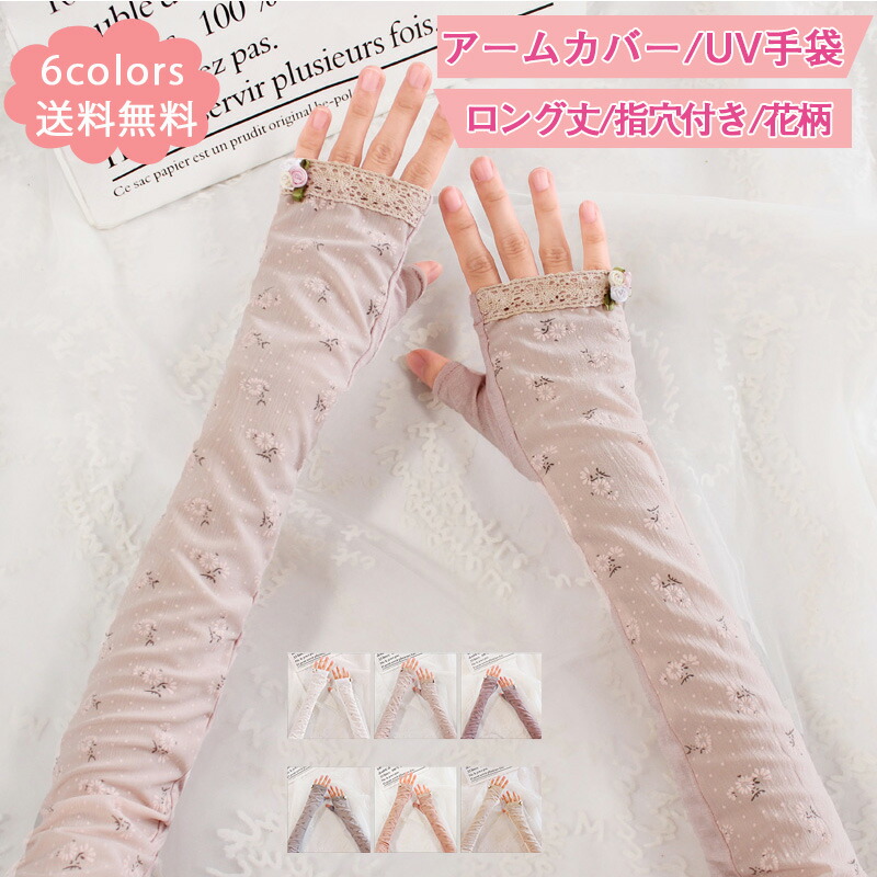 アームカバー レディース UV手袋 ロング丈 指穴付き 花柄 日焼け止め 紫外線対策 涼しい 可愛い プレゼント 夏用 作業用 きれいめ おしゃれ