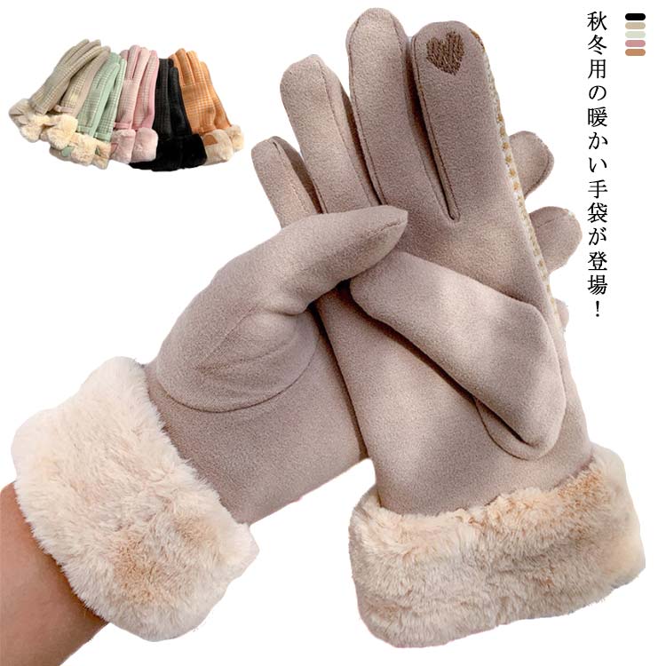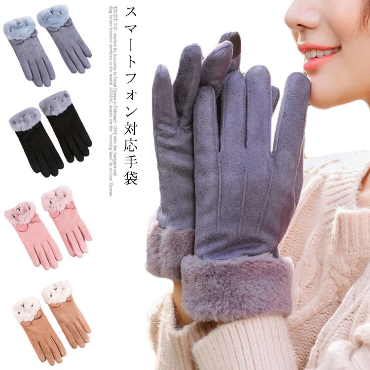 手袋 レディース かわいい 冬 あったか 暖かい スマホ 裏起毛 スエード 防寒 通勤 通学 おしゃれ スマートフォン対応手袋 シンプルシャムード手袋 ボア 手袋 五本指
