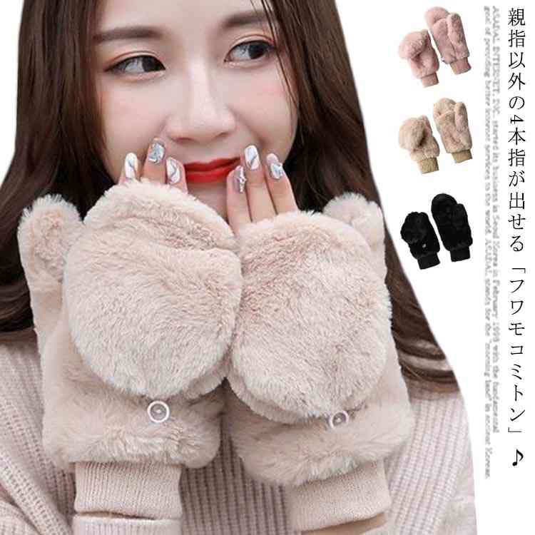 ふわふわ ミトン手袋 レディース 4本指が出せる 手袋バッグ 小物 ブランド雑貨 手袋 アームカバー レディース手袋