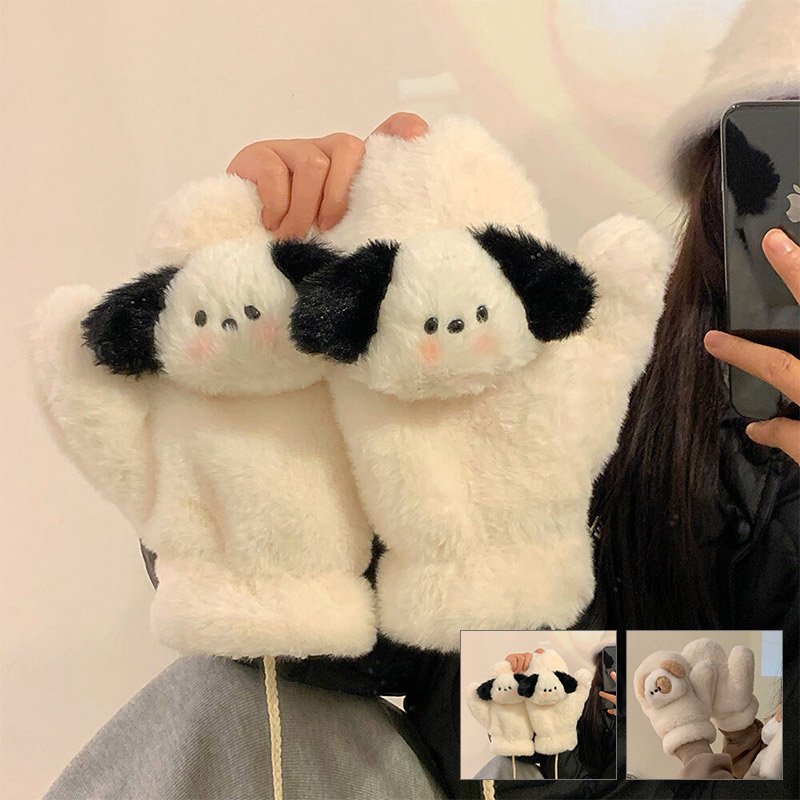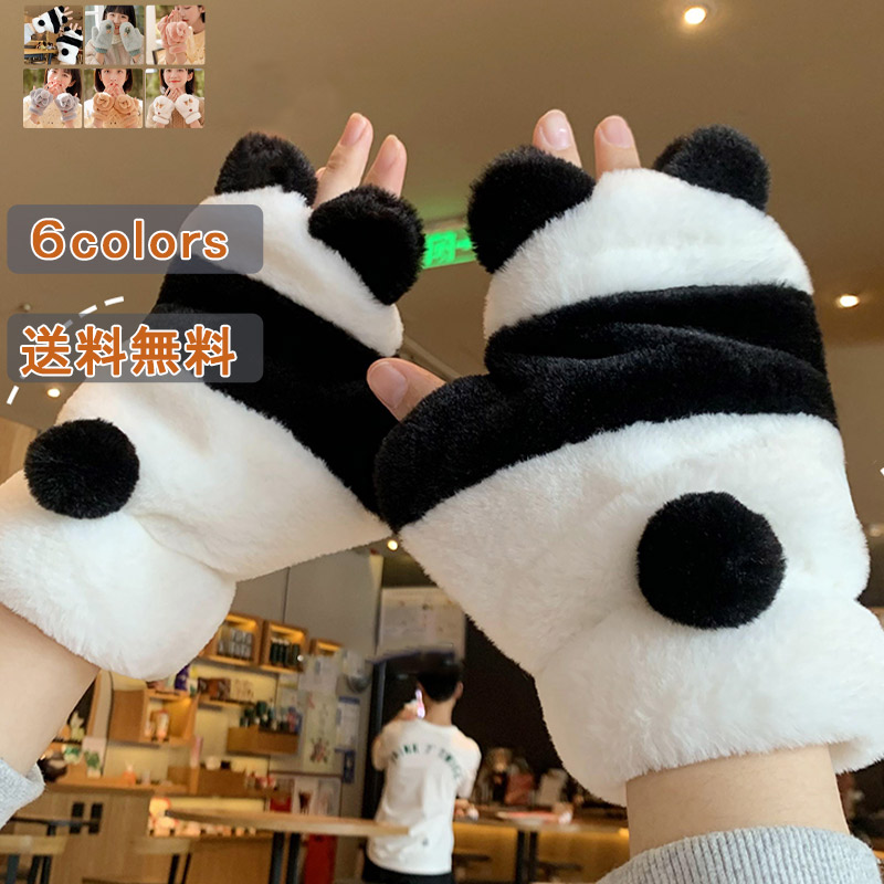 グローブ 指出し 手袋 レディース 手ぶくろ ハンドウォーマー ハンドケア パンダ 兎 アニマル 動物 かわいい 暖かい 秋冬 ギフト プレゼント 誕生日 女友達 女性 モコモコ ふわふわ 自転車 防