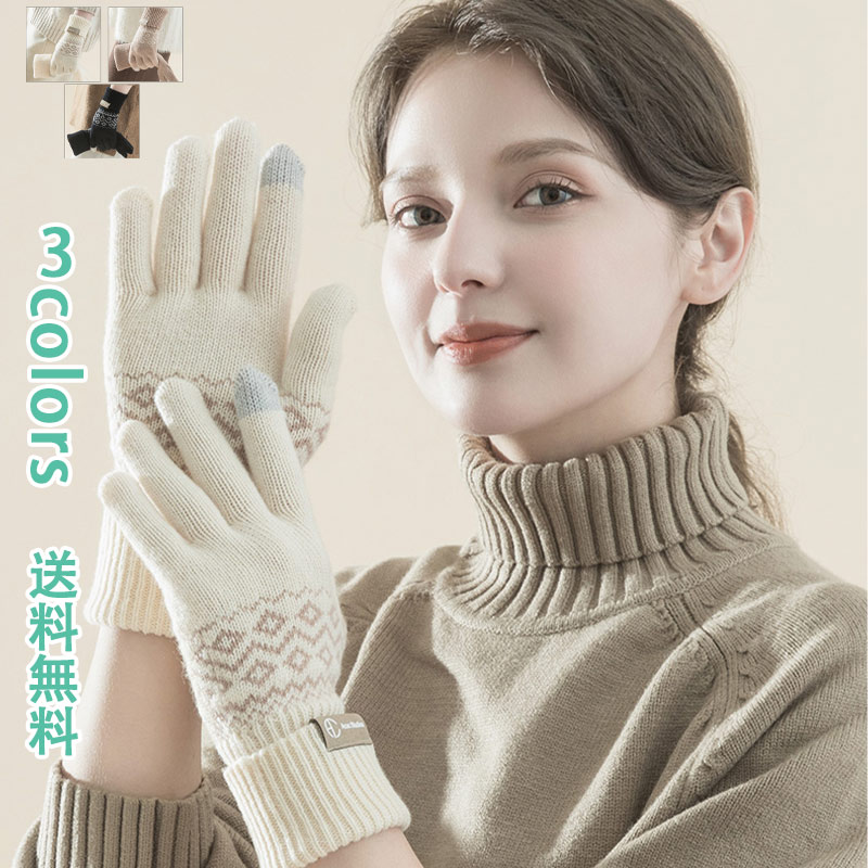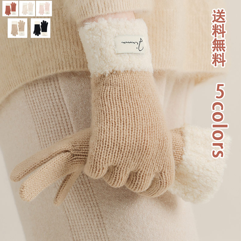 ニット手袋 レディース ウール 高級 お洒落 配色 切替 かわいい 暖かい 防寒 防風 保温 裏起毛 寒さ対策 手荒れ 肌荒れ 優しい肌触り 通勤 通学
