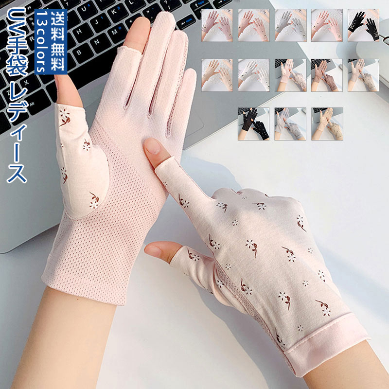 UVカット手袋 レディースグローブ 春夏用 ショート サイクリンググローブ 薄い スマホ対応 滑り止め付 女性