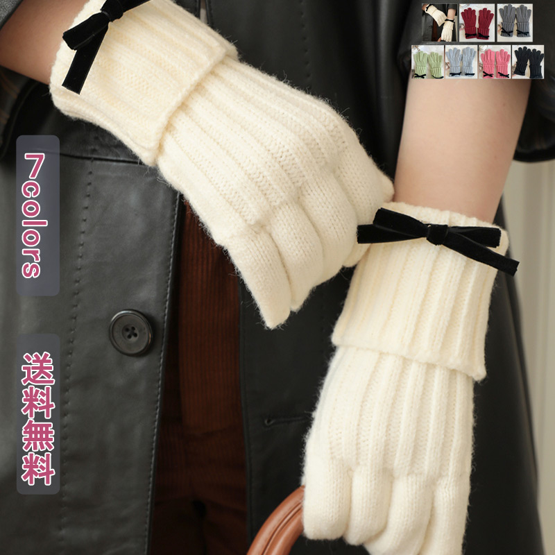 手ぶくろ 手袋 レディース 5本指 手編み ニット 蝶結び かわいい おしゃれ 暖かい 秋冬 ギフト プレゼント クリスマス 誕生日 女友達 女性 ふわふわ 自転車 防寒 防風 保温 裏起毛 寒さ対策