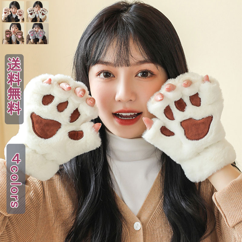 手袋 レディース 指穴あり グローブ 手ぶくろ 肉球 ハンドウォーマー 猫 指なし コスプレ スマホ対応 かわいい おしゃれ 暖かい 秋冬 ギフト プレゼント 誕生日 女性 ふわふわ 自転車 寒さ対策