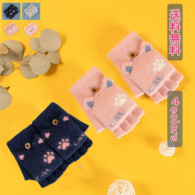 手袋 指なし レディース グローブ 半指 手ぶくろ 動物の顔が可愛い アニマル 猫 ネコ カバー付き スマートフォン対応 かわいい おしゃれ 暖かい 秋冬 ギフト プレゼント 女性 自転車 防寒 保温