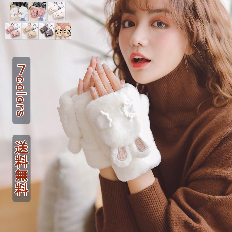 指出しグローブ 手袋 裏起毛 グローブ 手ぶくろ 裏ボア カバー付き フィンガーレス うさぎ レディース スマホ対応 かわいい おしゃれ 暖かい 秋冬 ギフト プレゼント 動物の顔が可愛い 誕生日 女