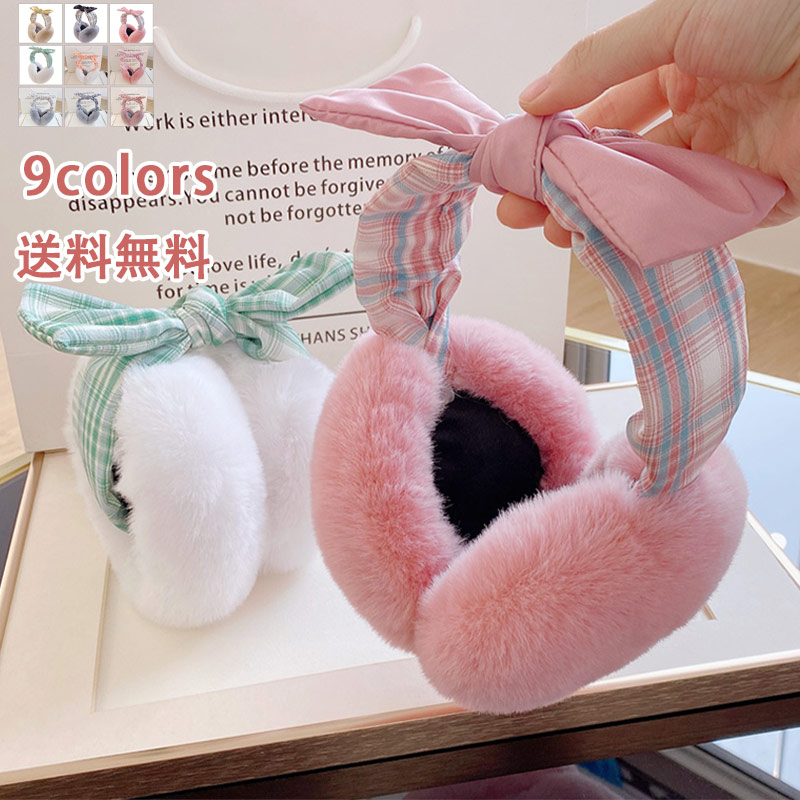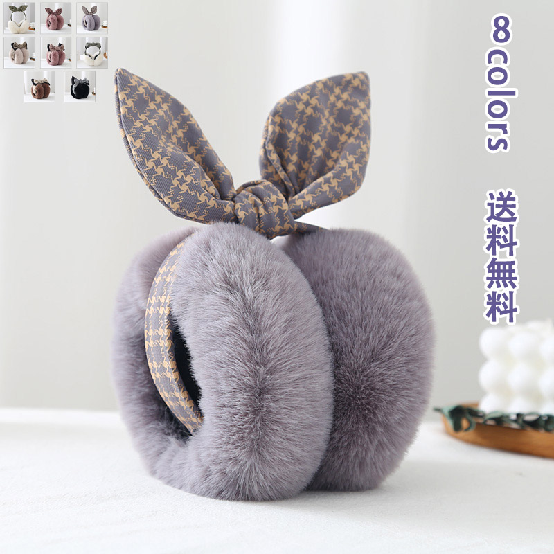 イヤーマフ 耳当て 防寒 ふわふわ 千鳥柄 蝶結び イヤーウォーマー レディース 耳あて 折りたたみ コンパクト ファー あったか イヤーマフラー もこもこ 耳カバー かわいい 軽量 アクセサリー 自