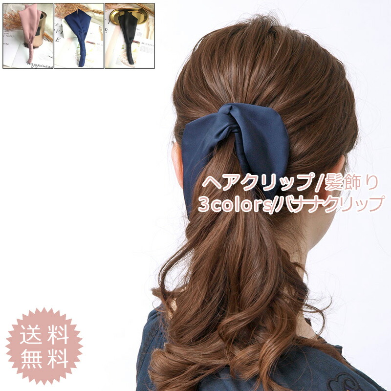 バナナクリップ レディース ヘアクリップ 無地 リボン 可愛い ヘアアクセサリー 大人 上品 エレガント 結婚式 パーティー 仕事 おしゃれ