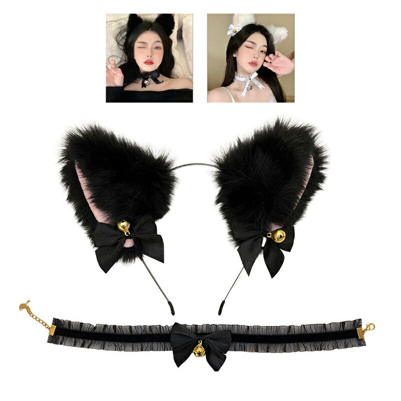 カチューシャ首輪セット もこもこ 耳カチューシャ セット猫 首輪 もこふわ 猫耳カチューシャ 2点セット