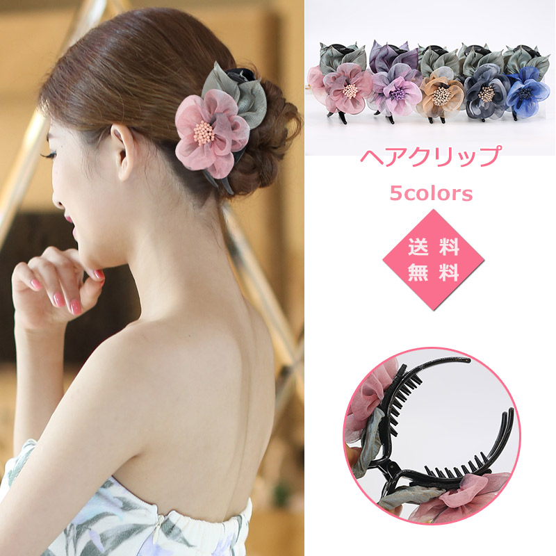 ヘアクリップ フラワー 大人 フォーマル 簡単 ヘアアレンジ 普段使い ファッション雑貨 小物 大人 女性 可愛い ピンク グレー 黄色 パーブル ブルー 贈り物 ギフト
