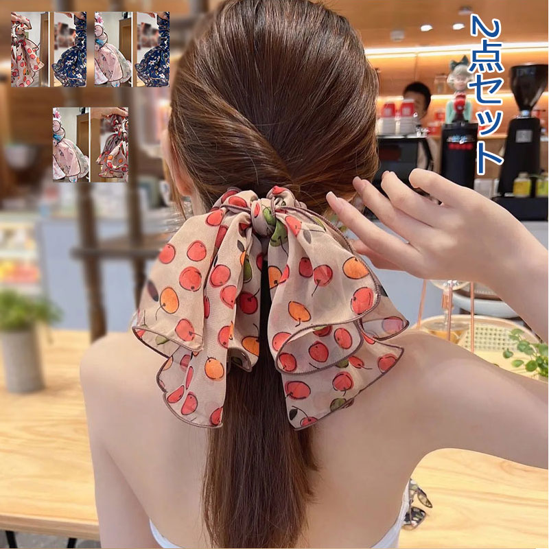 スカーフシュシュ 2点セット 花柄 スカーフ 春夏リボンヘアゴムジュエリー アクセサリー レディースジュエリー アクセサリー ヘアアクセサリー シュシュ