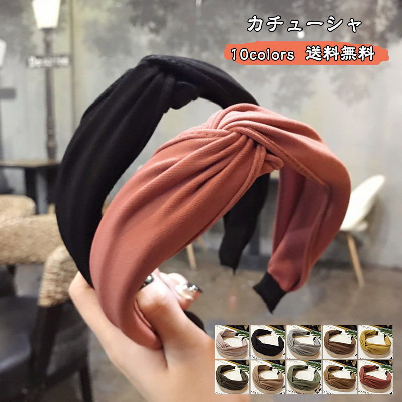 幅広 痛くない クロス リボン 無地 カチューシャ 10色入 シンプル レディース 大人っぽい ヘアアクセサリー ヘアバンド 黒 ブラック ベージュ カーキ おしゃれ
