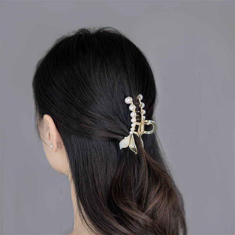 へアクリップ 大きめ 魚の尾 パール バンスクリップ 高品質 髪飾り 髪留め ヘアアクセサリー レディース 大人 女の子 可愛い おしゃれ 誕生日