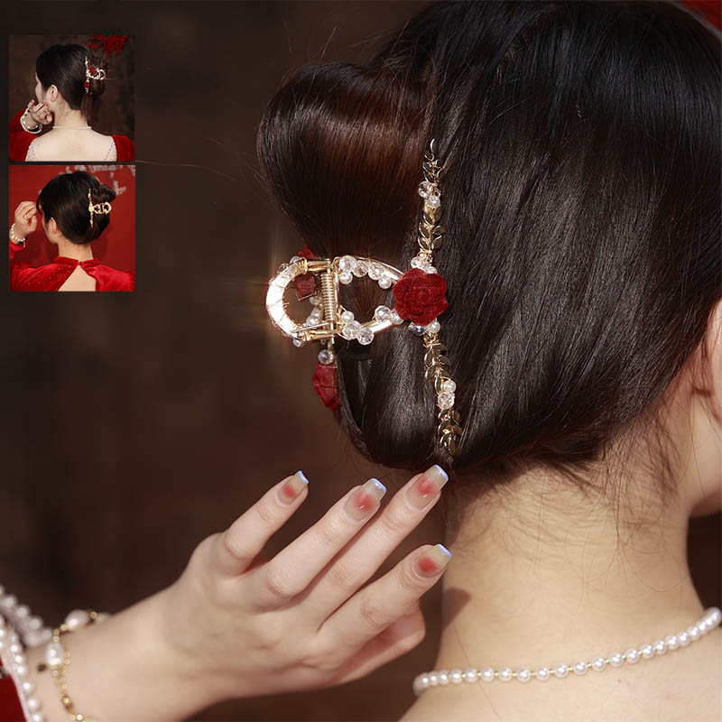 へアクリップ 大きめ 薔薇 バラ 花 ラインストーンバンスクリップ 高品質 髪飾り 髪留め キラキラきらきら ヘアアクセサリー レディース 大人