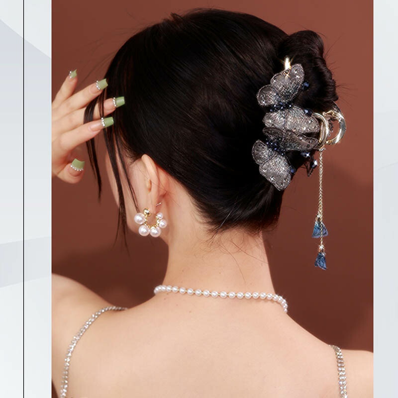 へアクリップ 蝶 シフォン バンスクリップ 高品質髪飾り 髪留め ヘアアクセサリー レディース 大人 女の子 可愛い おしゃれ 誕生日