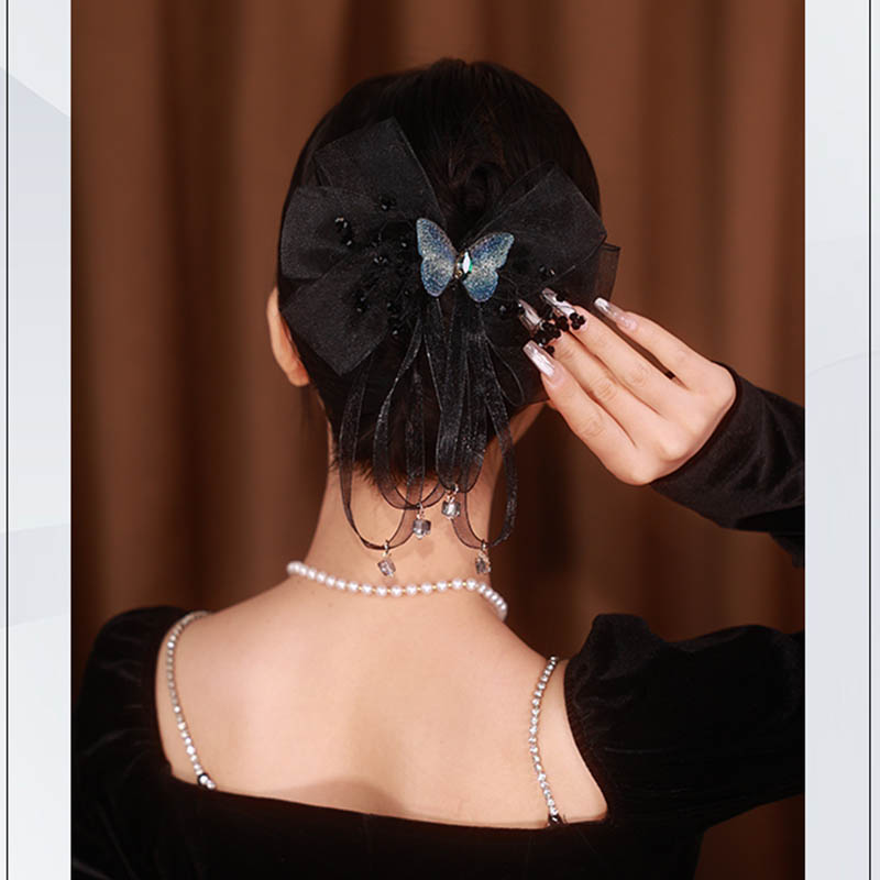 へアクリップ 蝶 蝶結び ブラック ラインストーン 高品質 髪飾り 髪留め きらきら キラキラ バンスクリップ ヘアアクセサリー レディース 大人
