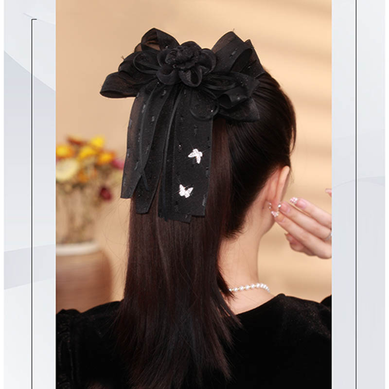 へアクリップ 花蝶 ブラック グリーン 高品質 髪飾り 髪留め バンスクリップ ヘアアクセサリー レディース 大人 女の子 可愛い 演奏会