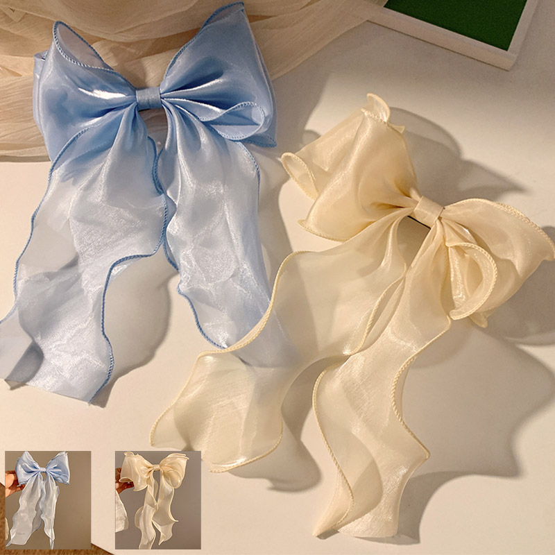 バレッタ ヘアクリップ 大きめ ヘアアクセサリー 髪留め まとめ髪 リボン オーガンジー 透け感 大人