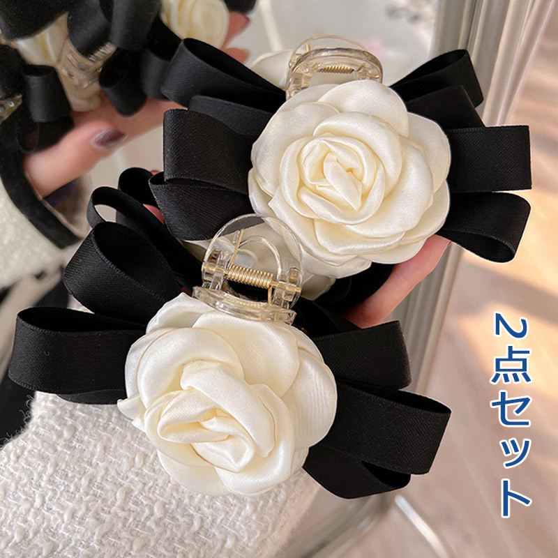 バンスクリップ 2点セット 椿の花 バラ ヘアクリップ ファッション小物 アクセサリージュエリー アクセサリー レディースジュエリー アクセサリー ヘアアクセサリー ヘアクリップ