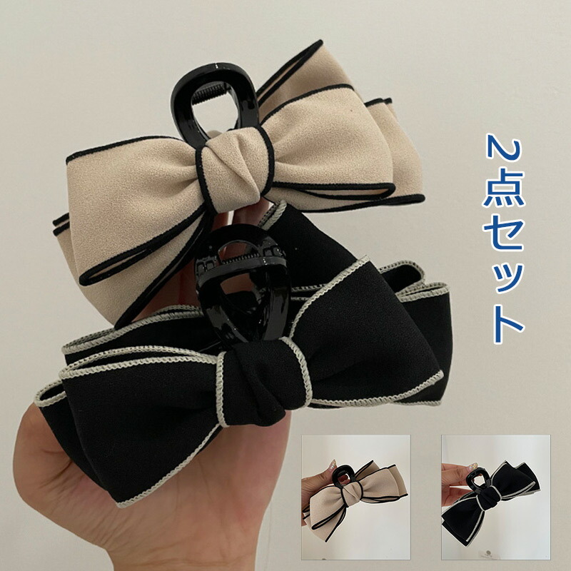 ヘアクリップ 2点セット レディース ヘア飾り バレッタ 無地 蝶結び まとめ髪 オフィスジュエリー アクセサリー レディースジュエリー アクセサリー ヘアアクセサリー ヘアクリップ