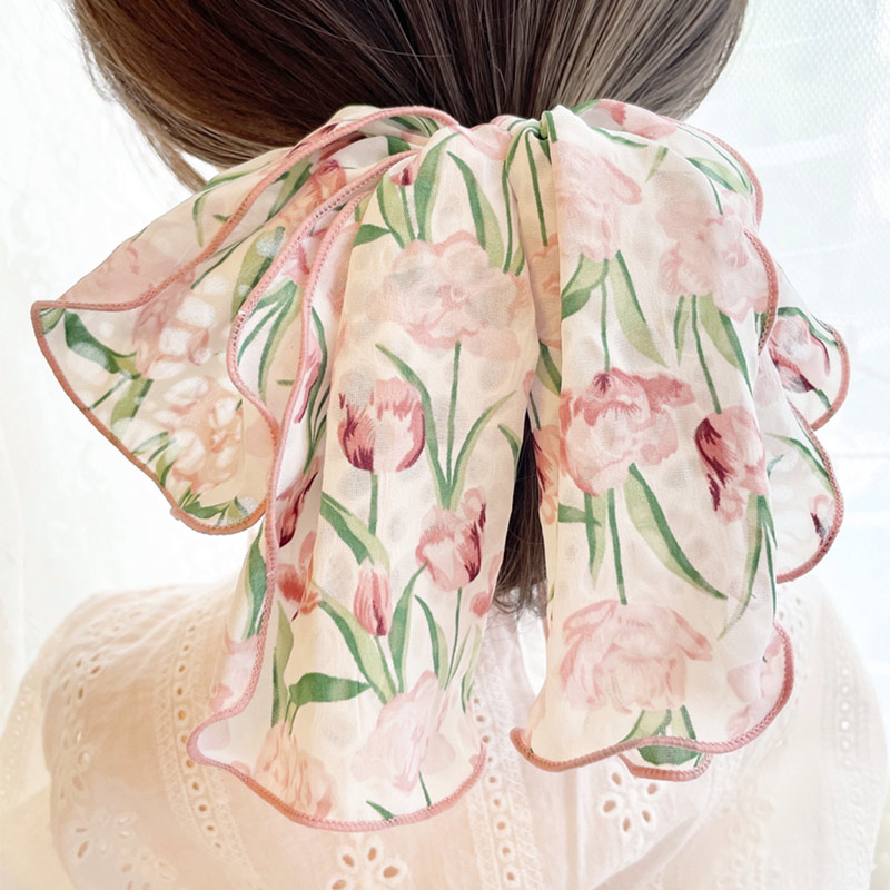 シュシュ リボンシュシュ ヘアゴム ヘアアクセサリー 髪ゴム チューリップ柄 シフォン レディースジュエリー アクセサリー レディースジュエリー アクセサリー ヘアアクセサリー シュシュ