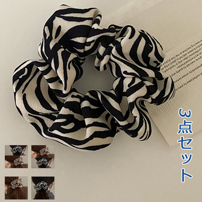 シュシュ 3点セット ヘアゴム ゼブ芝 レディース おしゃれ 可愛い アニマル 軽量 ヘアアクセサリー