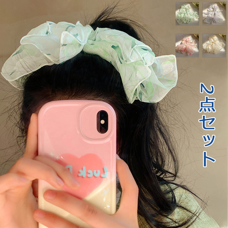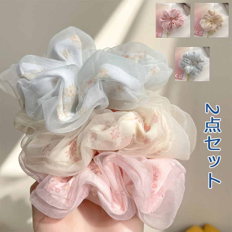 シュシュ 2点セット ヘアゴム 髪ゴム ヘアアクセサリー レディース 女性 花柄 フラワー メッシュ 髪留め