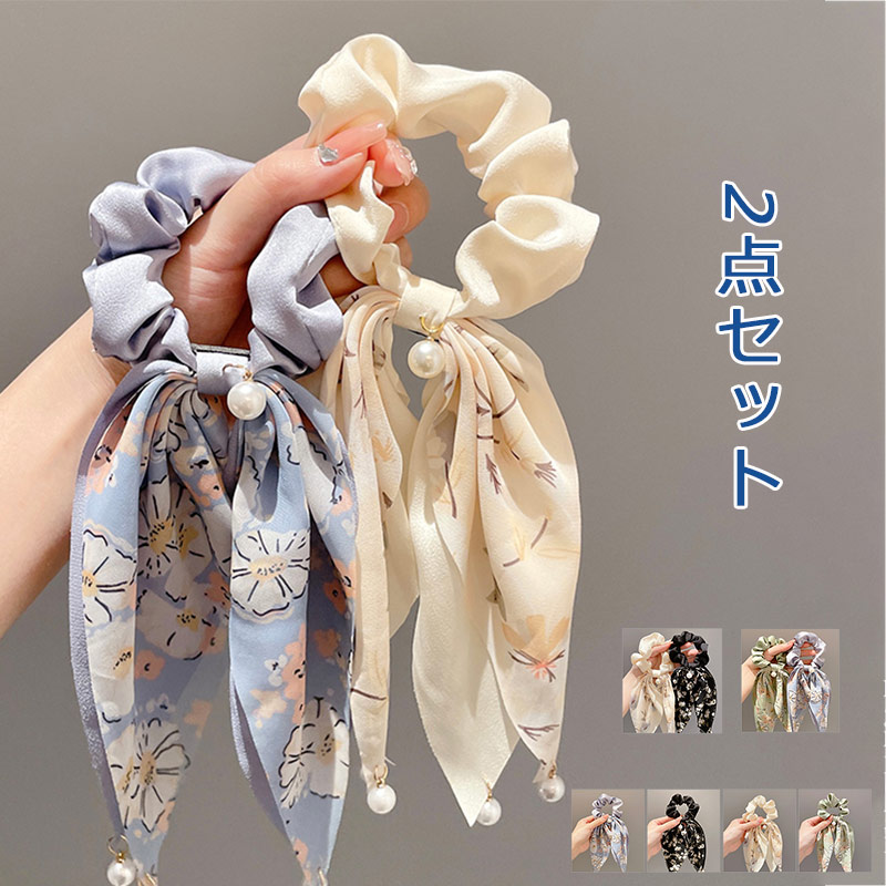 スカーフシュシュ 2点セット 花柄 スカーフ 春夏リボンヘアゴムジュエリー アクセサリー レディースジュエリー アクセサリー ヘアアクセサリー シュシュ