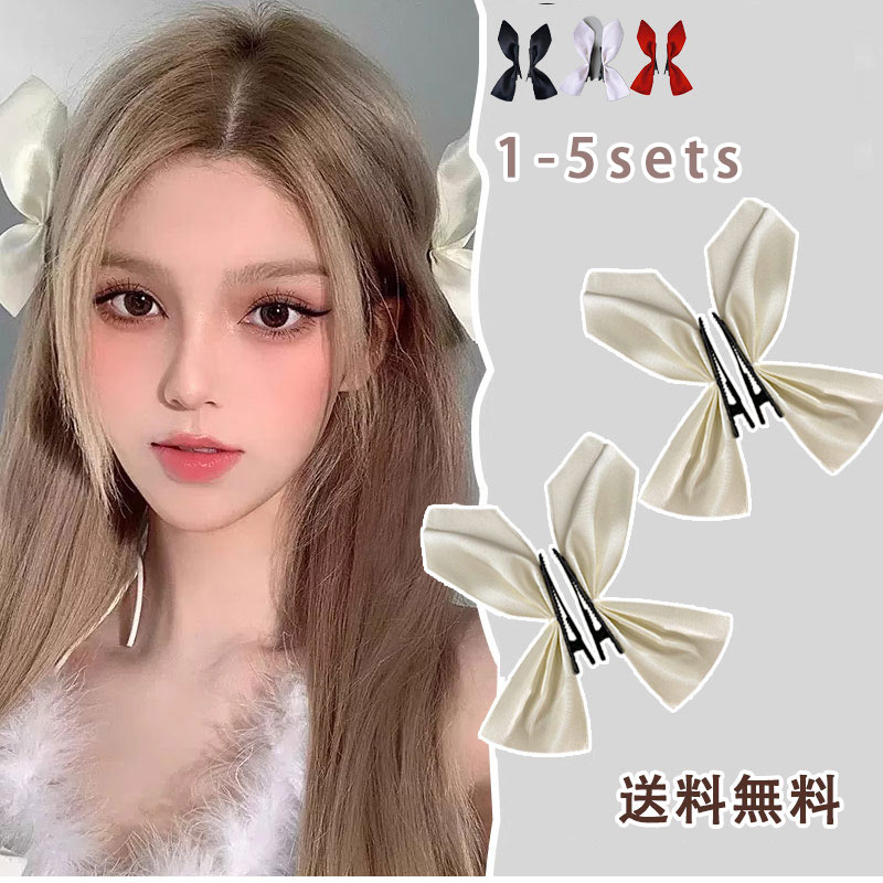 ヘアクリップ リボン ヘアアクセサリー リボンクリップ しっかり クリップ 大きめ 可愛い おしゃれ シンプル 大人 上品 オフィス ヘアピン