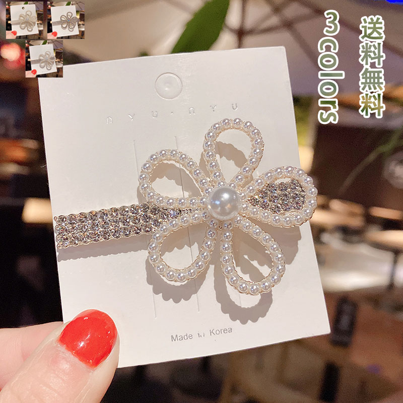 ヘアクリップ ヘアアクセサリー ヘアアクセ レディース ミニクリップ お花 フラワー モチーフ パール ラインストーン きらきら 前髪クリップ