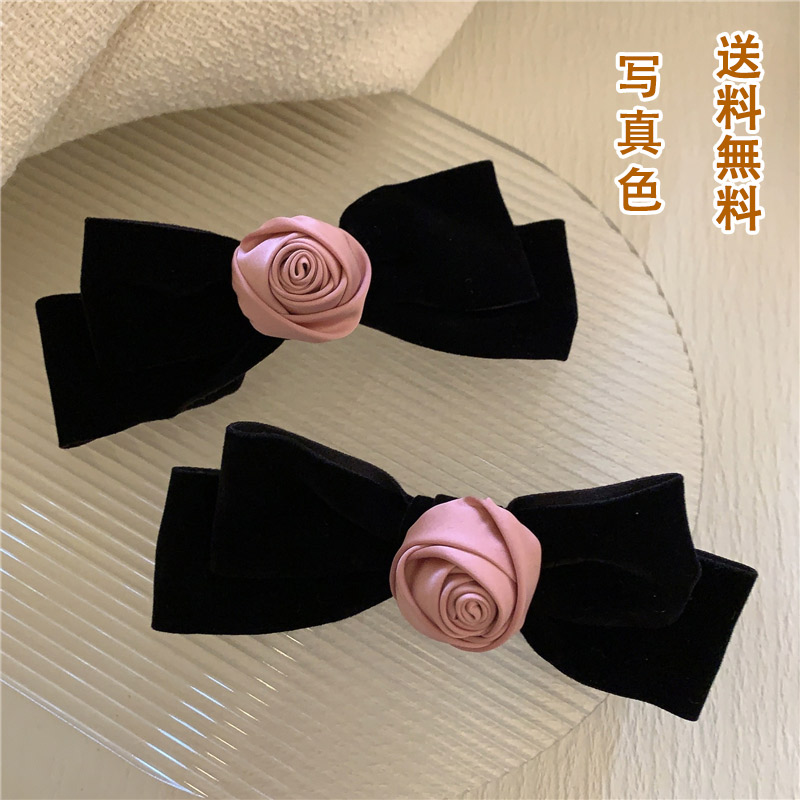 ヘアクリップ 2個セット くりばしクリップ 髪留め レディース 女性用 ヘアアクセサリー レザー調 リボン 蝶結び エレガント ヘアアレンジ 上品 清楚