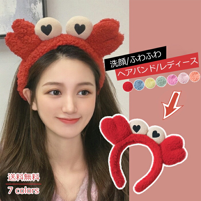 カチューシャ レディース 洗顔 ふわふわ カニ柄 リボン 便利グッズ プレゼント 女性 ヘアアクセサリー 化粧 小物 便利 おしゃれ もこもこ