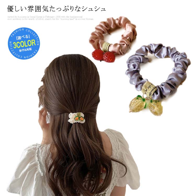 2個セット シュシュ サテン ヘアゴム ボリューム シルク風 ヘアアクセサリー 髪飾り髪に優しい 光沢 大人 静電気防止 無地 かわいい 全15色 上品 女性 レディース