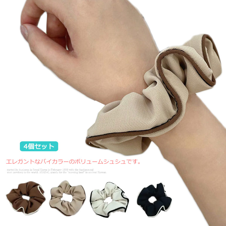 シュシュ ヘアゴム 4点セット バイカラー 大人 ボリューム きれいめ ヘアアクセサリー 髪飾り エレガント シック シンプル レディース おしゃれ 可愛い 高級感