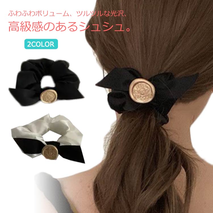 シュシュ ヘアアクセサリー レディース ヘアポニー ボリューム 大きめ ヘアロープ 可愛い 人気 シンプル カジュアル