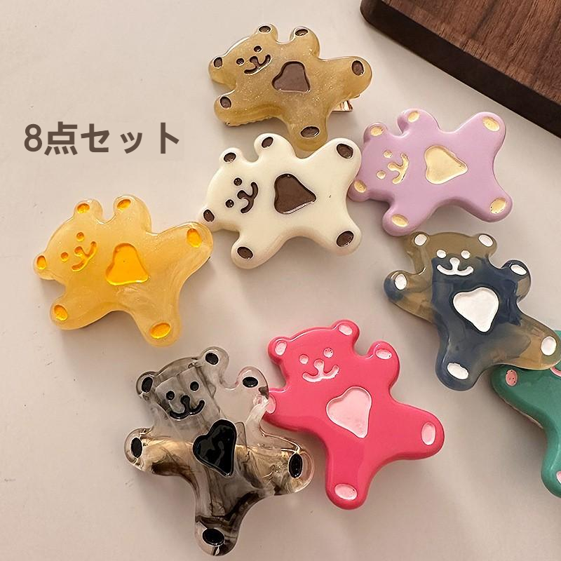 8点セット ヘアクリップ チェック柄 クマ bear バンスクリップ 髪どめ 結婚式 パーティー プレゼント お出かけ 子供 大人 ins かわいい まとめ髪 ヘアアクセサリー ヘアアレンジ おしゃれ