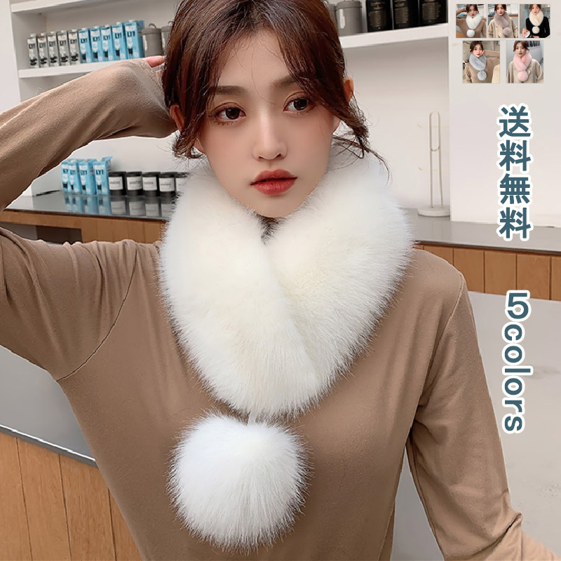 フォックスショール スカーフ マフラー ショール シンプル モコモコ ふわふわ 暖かい チクチクしない ソフトタッチ かわいい 毛皮 毛皮マフラー 毛皮ストール 実用的 冷えとり 防寒 あったか 暖か