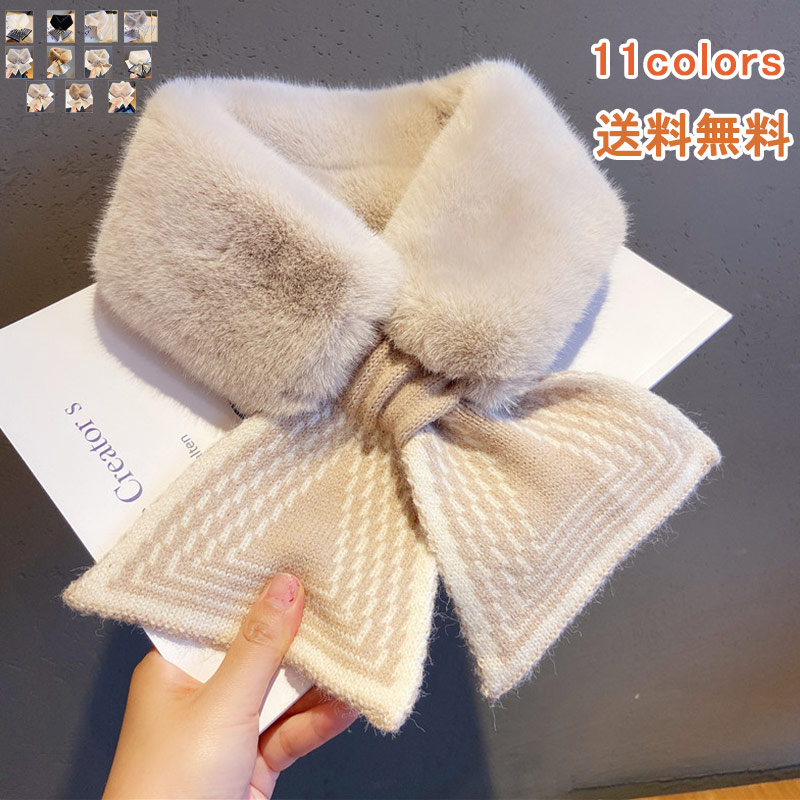 ミニマフラー 差し込み コンパクト レディース マフラー ストール ミニ プチ ネックウォーマー 実用的 冷えとり 防寒 あったか 暖かい ニット ギフト プレゼント 秋冬 カジュアル フェイクファー