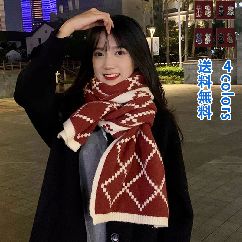 マフラー ニット 大判 ストール ジャガード レディース あったか 暖かい おしゃれ 薄地 プレゼント ギフト レッド 赤 敬老の日 母の日 父の日 防寒