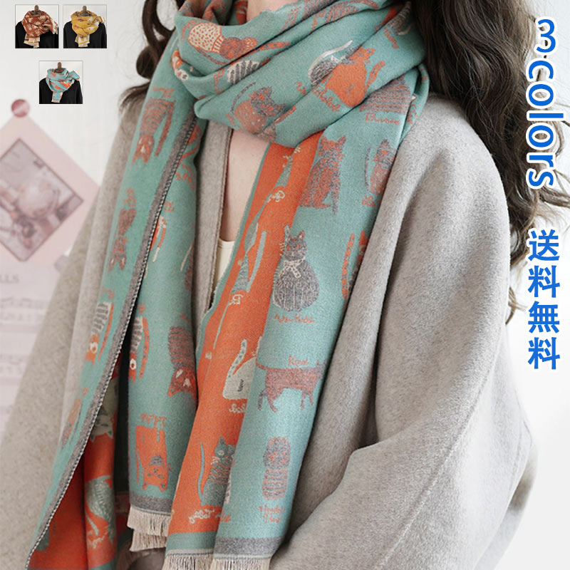ストール 秋冬 猫 プリント 大判 マフラー 薄手 ポリエステル 巻物 あったか 暖かい 猫柄 ネコ 猫雑貨 プレゼント クリスマス バレンタイン
