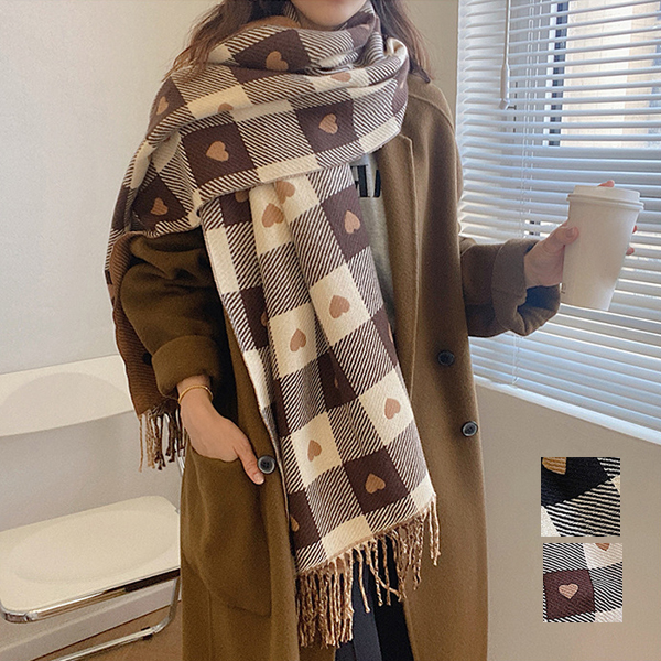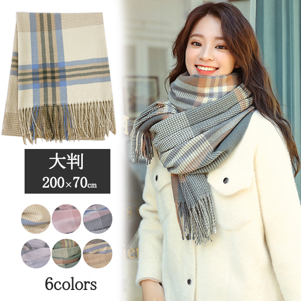 マフラー レディース メンズ ストール かわいい 大判 200*70 タッセル あったかい チェック柄