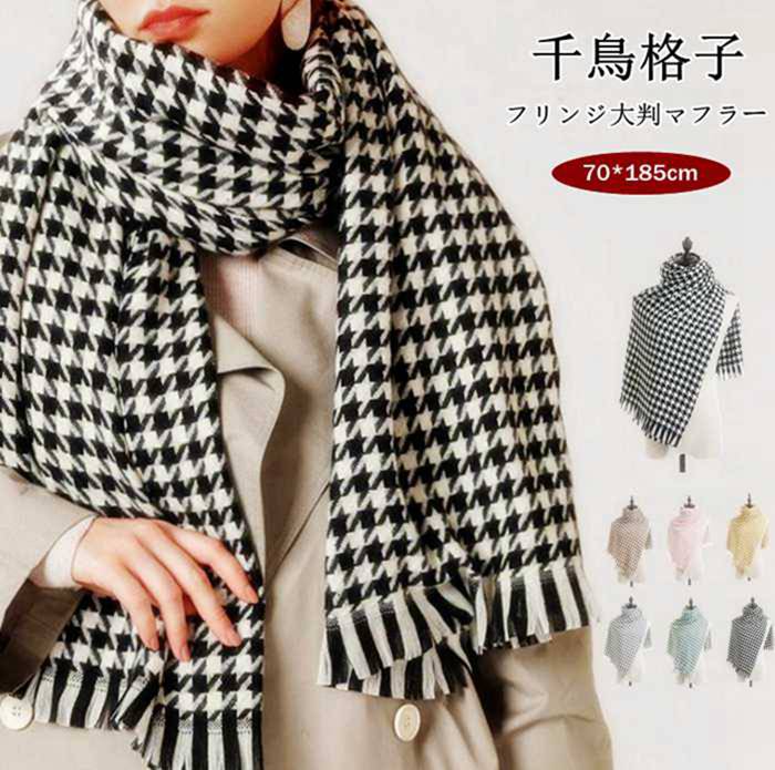 大判マフラー ロングマフラー 千鳥格子柄 防寒 暖かい フリンジ 大判 ポレロ ストール マフラー レディース ファッション 小物 秋冬 プレゼント ギフト クリスマス