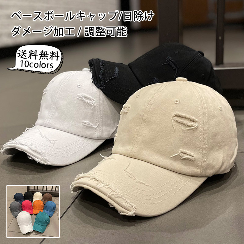野球帽 レディース ベースボールキャップ 無地 ダメージ加工 カジュアル風 日焼け予防 オールシーズン シンプル スポーツ アウトドア おしゃれ