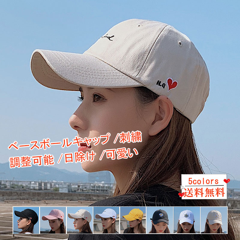 野球帽 レディース ベースボールキャップ 花柄 ハート柄 刺繍 カジュアル風 調整可能 日焼け予防 オールシーズン 可愛い スポーツ アウトドア おしゃれ